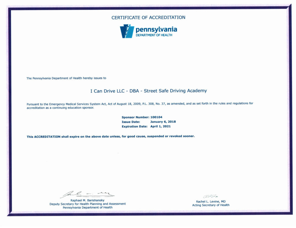 As a PA Department of Health accredited continuing education sponsor our Emergency Medical Services Vehicle Operator (EMSVO) Continuing Education Course meets the state standard needed to provide EMS vehicle operators with the continuing education credits needed to renew their certification.